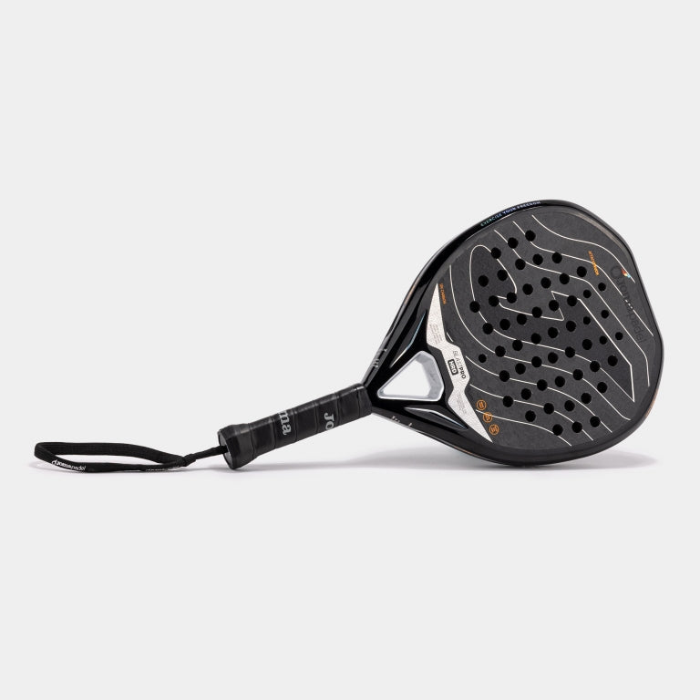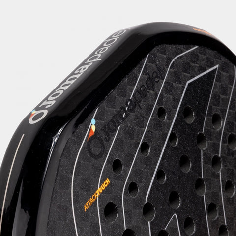 Por otro lado, su acabado JOMA 3D SPIN en relieve tridimensional aumenta la efectividad y el control en los golpes con efecto como top spin o slice. Mientras que el sistema de perforado inteligente ATTACK TOUCH redistribuye el peso y la flexión de la cara, generando un control refinado sin perder sensibilidad ni fluidez en el golpe.